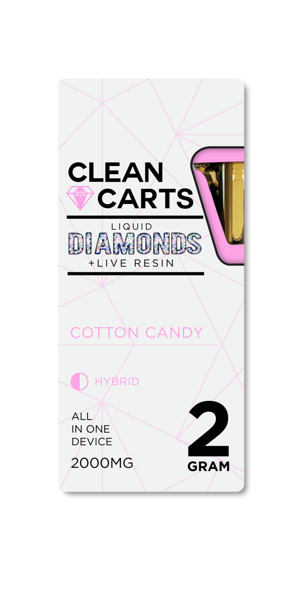 Treat yourself to COTTON CANDY Clean Carts 2.0G, where premium refined live resin meets sweet, nostalgic flavor for a smooth and enjoyable vaping experience