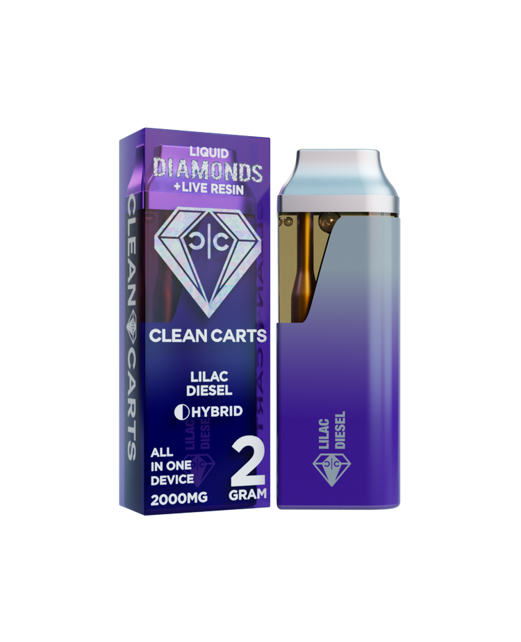 Experience a perfect blend of floral elegance and fuel power with the Lilac Diesel 2G Clean Carts Liquid Diamonds + Live Resin All-in-One Device. Each puff combines earthy diesel notes with soft lilac sweetness, creating a flavorful, aromatic, and smooth vaping experience.