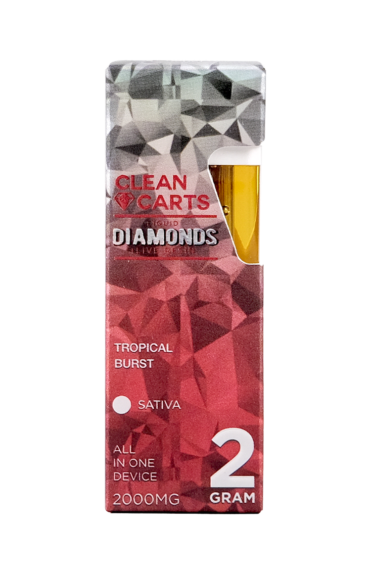 Escape to a tropical paradise with the Tropical Burst 2G Clean Carts Liquid Diamonds + Live Resin All-in-One Device. Each puff brings juicy pineapple, mango, and exotic fruit flavors, blended perfectly for a smooth, flavorful, and refreshing experience.